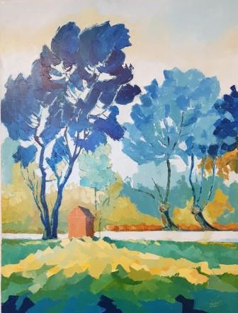 Entre mes huiles et mes aquarelles, je développe deux « styles » très différents : en aquarelle, je suis relativement réaliste, en termes de dessin comme de traitement de la couleur ; en huile (et de plus rares acryliques) je m’éloigne du sujet, stylisé et traité généralement par taches de couleurs souvent vives.