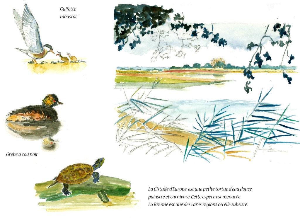 Publié en 2019, ce carnet (15cm X 21cm) regroupe une centaine d’aquarelles et quelques croquis sur la Brenne : paysages, habitat, faune et flore.